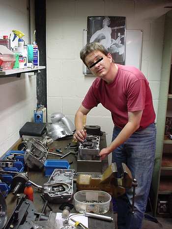 ![]() | Picture on the left: One of our former employees Henk T. working on an engine. Look at the smile on his face, he finally got it right! All caractures on this picture are made unrecognizable on request of the IRS. Any similarity with existing persons is based on coincidence. |