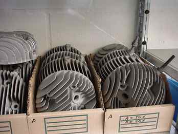 We have stock of the cilinder heads for both Bosch and Siba engines. We cleaned; glass pearled and inspected the heads. Two quality's available A=100% OK Euro .. B=very good usable, sparkplug thread OK, maybe some small pieces of the cooling fins broken, for Euro ...,- REMARK: If you order a cilinder head, consider an O-ring seal instead of the original gasket. See the machining job we can provide under the "service" button. | ![]() | |